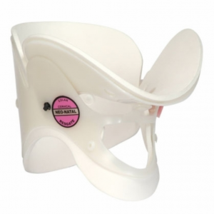 Produto destinado a imobilização da coluna cervical. Possui apoio mentoniano e occiptal. Sua ampla abertura frontal permite checar o pulso carotídeo e realizar procedimentos de traqueostomia. Aberturas na parte posterior proporcionam a ventilação do local e permitem verificar o escoamento de fluídos, tais como o sangue. Ortopratika Tamanho: Neonatal