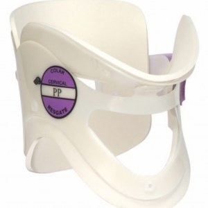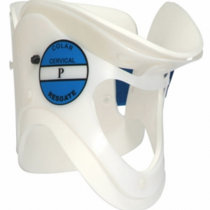 Produto destinado a imobilização da coluna cervical. Possui apoio mentoniano e occiptal. Sua ampla abertura frontal permite checar o pulso carotídeo e realizar procedimentos de traqueostomia. Aberturas na parte posterior proporcionam a ventilação do local e permitem verificar o escoamento de fluídos, tais como o sangue. Ortopratika Tamanho: P