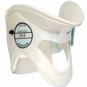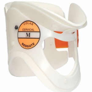 Produto destinado a imobilização da coluna cervical. Possui apoio mentoniano e occiptal. Sua ampla abertura frontal permite checar o pulso carotídeo e realizar procedimentos de traqueostomia. Aberturas na parte posterior proporcionam a ventilação do local e permitem verificar o escoamento de fluídos, tais como o sangue. Ortopratika Tamanho: M