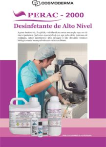 Desinfetante de alto nível especialmente desenvolvido para ser utilizado em desinfecção geral. Composto por Ácido Peracético na concentração de 0,2%.   Apresentação:   Bombona de 05 litros. Frasco de 1 litro. Inibidor de Corrosão INIBICPERAC 2000 1 Pote com 15 tiras INDICPERAC 2000 para controle de concentração.