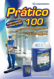 Prático 400 detergente e desinfetante hospitalar para superfícies fixas e artigos não críticos. Pode ser usado em todos os tipos de superfícies laváveis, tais como pisos, paredes, metais, louças sanitárias, portas, mesas, etc. de hospitais, clínicas, ambulatórios, laboratórios de análises e outros estabelecimentos ligados à área de saúde. Principio ativo:  Polihexametileno Biguanida (PHMB) e Quaternário de Amônio … Continue reading PRÁTICO 400