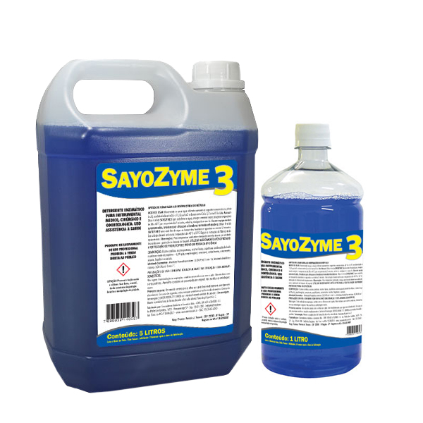 Sayozyme 3 detergente multienzimático a base de 3 enzimas, especializado na limpeza de todo instrumental cirúrgico e materiais médico-hospitalares. Pode ser usado em equipamentos automatizados, lavadoras por ultrassom, lavadoras descontaminadoras ou em procedimentos manuais. Desenvolvido para máxima limpeza de endoscópios, fibroscópios flexíveis, cateteres, instrumentais cirúrgicos, odontológicos, materiais de anestesia, pisos e vidrarias, agindo por contato sem danificar nenhum componente destes instrumentos.